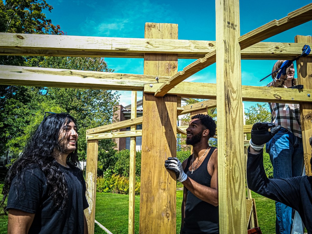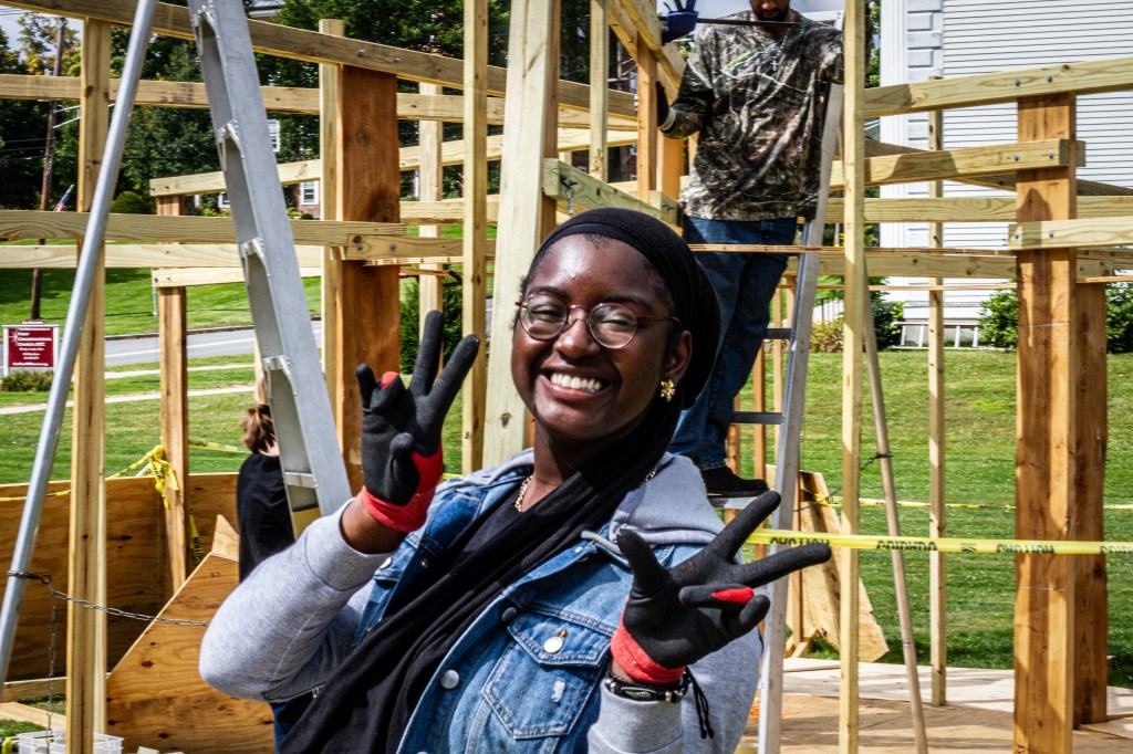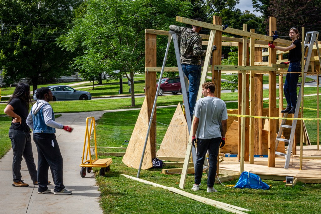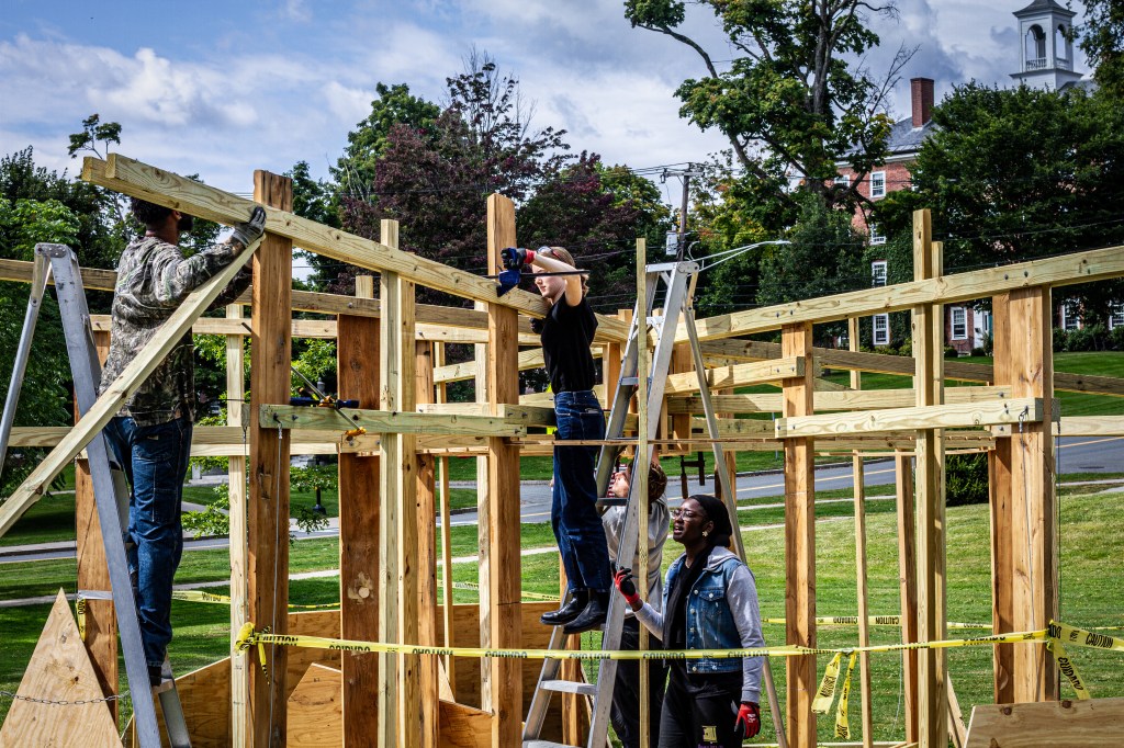 Students faced challenges, such as uneven ground and warped wood salvaged from the 1895 Jenness House. They learned to adapt their plans and make real-time decisions. This flexibility is crucial architectural skill, as paper designs often meet practical limitations.